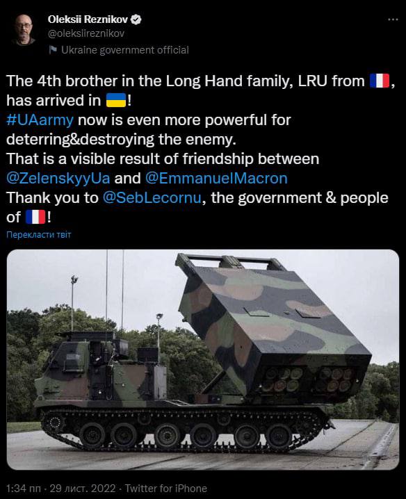 В Украину доставлена первая французская РСЗО LRU MLRS.