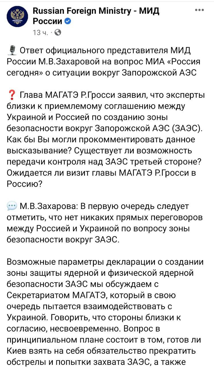 10:21 Продолжаются заявления из РФ, что Запорожскую АЭС они отдавать никому под контроль не намерены.