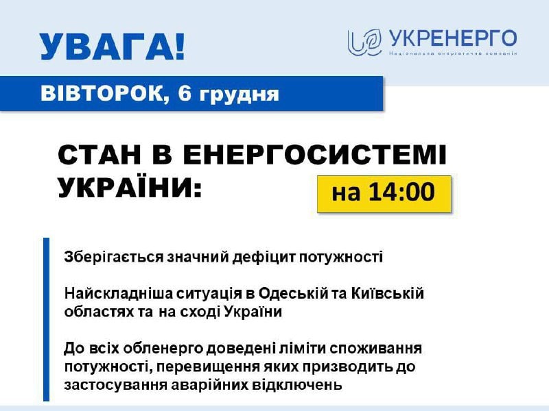 2. Существует угроза ракетных ударов противника по объектам энергосистемы и критической инфраструктуры на всей территории Украины.