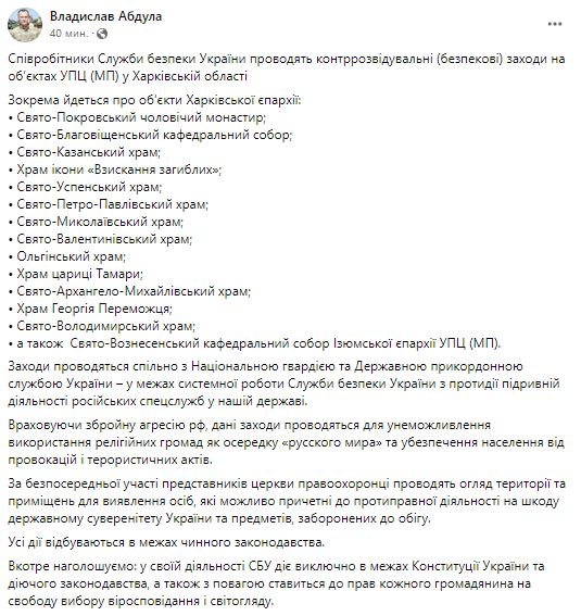 СБУ проводит проверки с храмах УПЦ Харьковской области. Фото: fb.com/VladislavAbdulaСБУ проводит проверки с храмах УПЦ Харьковской области. Фото: fb.com/VladislavAbdulaСБУ проводит проверки с храмах УПЦ Харьковской области. Фото: fb.com/VladislavAbdula