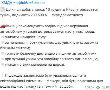 Жителей Киева и Киевской области предупредили, что сегодня, 10 декабря, после обеда испортится погода: регион накроет сильнейшим туманом. Такая непогода продлится до утра завтрашнего дня, 11 декабря.