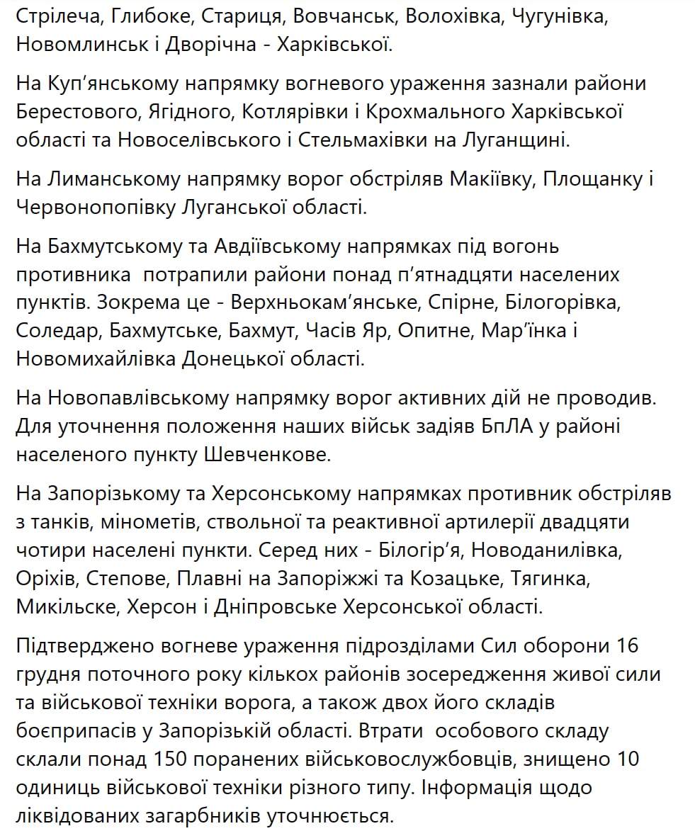 08:13 Сводка украинского Генштаба на утро 18 декабря.