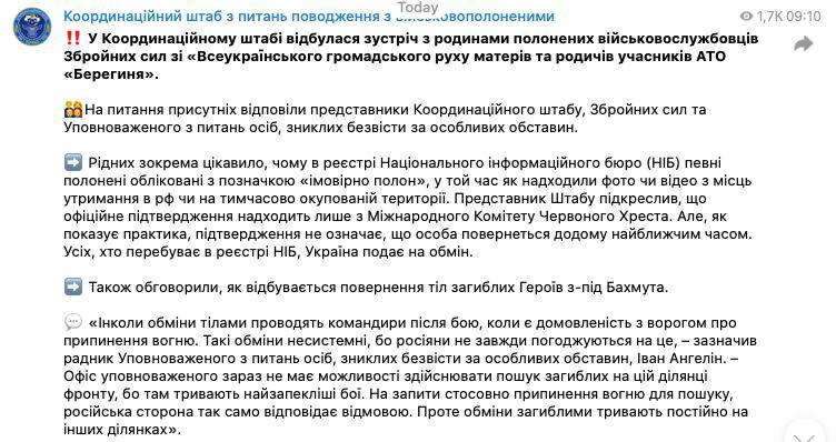 Родственников, в частности, интересовало, почему некоторые военные, попавшие в плен, помечены в реестре как "вероятно пленные", хотя уже были опубликованы фото, подтверждающие это. Военные объяснили, что официальное подтверждение таких фактов поступает только от Красного Креста.