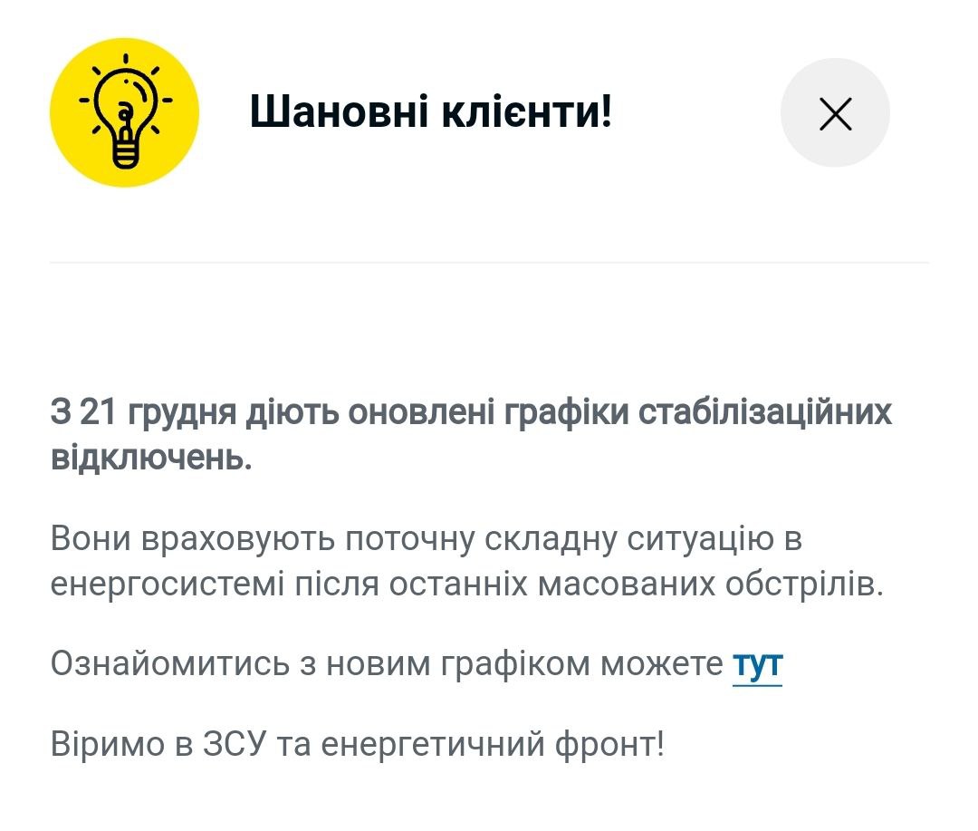 В Киеве в четверг, 22 декабря, по-прежнему нет графиков отключения света - действует экстренный режим отключений .