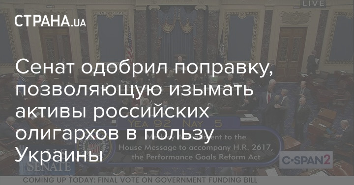 "Сенат единогласно одобрил поправку, позволяющую конфисковать и продавать активы российских олигархов для их передачи Украине для гуманитарной и военной помощи", - написал Каплан.