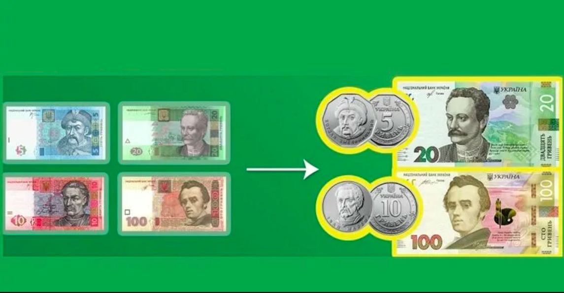 В обращении оставят монеты номиналами 5 и 10 гривен образца 2018 года и банкноты номиналами 20 и 100 гривен нового поколения.