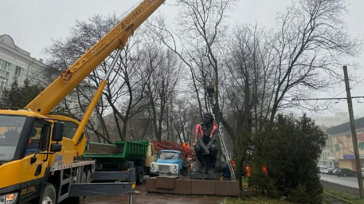 В Днепре демонтировали памятник писателю Максиму Горькому, который вместе со снесенными монументами Пушкину и Ломоносову перенесут на территорию КП "Зооконтроль".