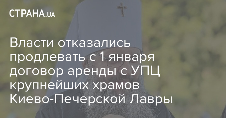 Председатель Синодального информационно-просветительского отдела Украинской православной церкви митрополит Климент заявил "Стране", что музей Киево-Печерской Лавры отказался продлить с УПЦ договор аренды двух крупнейших храмов Лавры - Трапезного и Успенского соборов. Срок действующего договора истекает 31 декабря 2022 года. То есть - с 1 января договор действовать не будет.