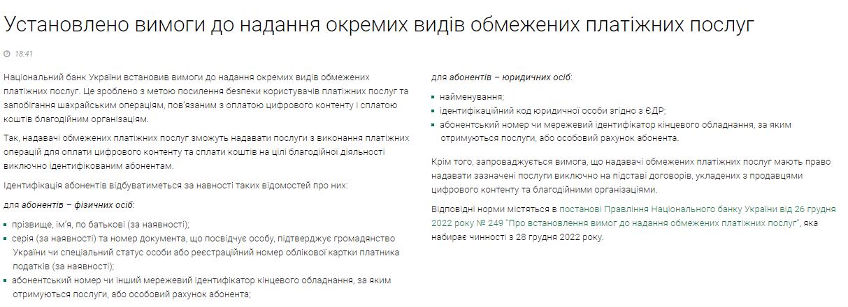 С завтрашнего дня, 28 декабря, украинцы не смогут через банки свободно и без идентификации оплачивать цифровой контент и совершать перечисления в благотворительные фонды. Вступит в силу постановление Нацбанка №249, опубликованное сегодня вечером, которое ограничивает в этом и граждан, и компании.