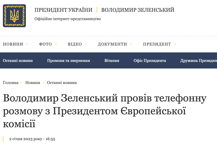 Президент заявил главе ЕК, что для Украины важно получить первый транш от ЕС в размере 3 млрд евро уже в январе.