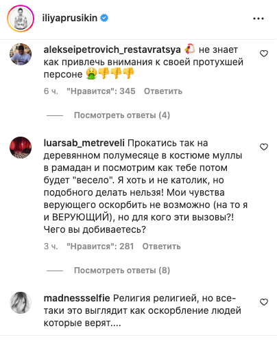 В комментариях к этому видео поднялась волна возмущения - Прусикина обвиняют в кощунстве и в утрате чувства меры.