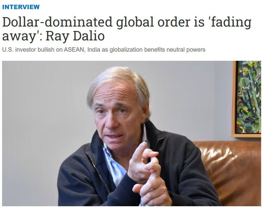 "Эпоха мирового порядка с доминированием доллара и глобализацией в экономике уходит, сейчас главные мировые державы формируют свои экономические, финансовые и военные блоки", – заявил основатель крупнейшего в мире хедж-фонда Bridgewater Associates Рэй Далио в интервью Nikkei Asia.