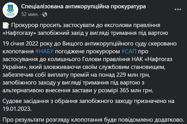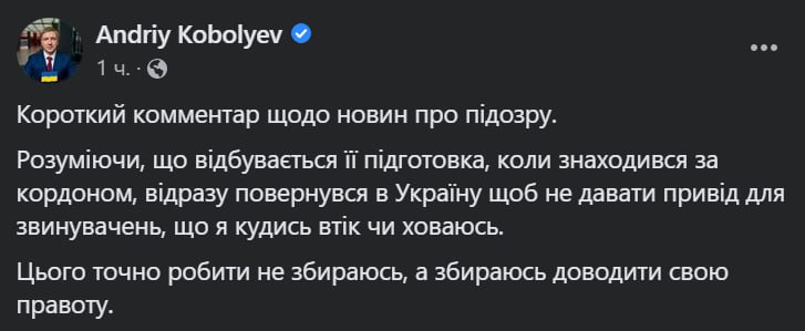 11.24 НАБУ объявило о подозрении бывшему главе правления "Нафтогаза", который руководил компанией с 2014 по 2021 годы. То есть - Андрею Коболеву.