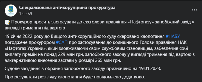 Об этом сообщает Специализированная антикоррупционная прокуратура (САП) в своем Facebook.