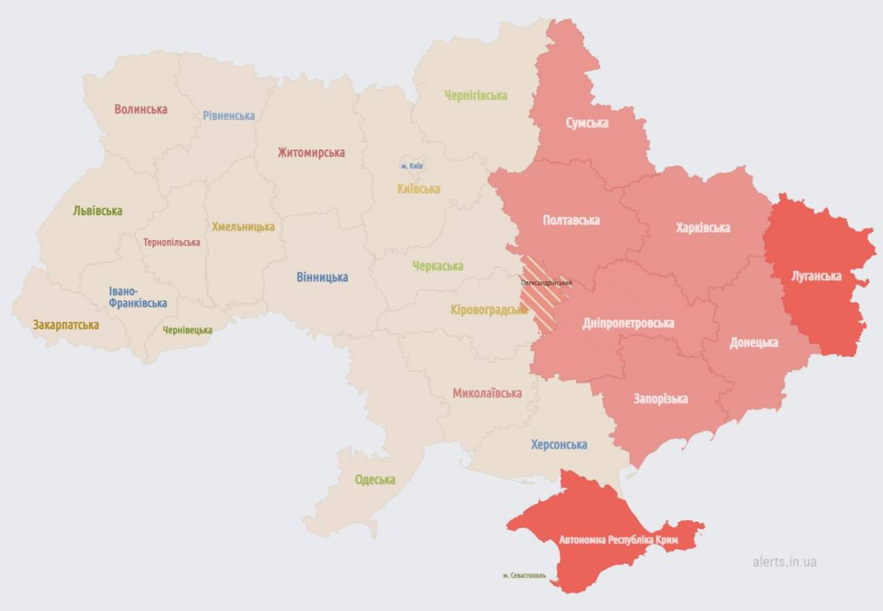 06.15 Карта воздушных тревог на сейчас.