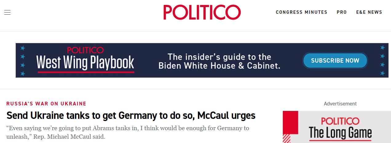 06.30 Глава Комитета по иностранным делам Палаты представителей США Майкл Маккол призвал объявить о предоставлении танков Украине, чтобы Германия и другие страны последовали этому примеру.