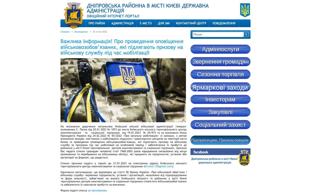 11.02 Объявления с призывом ко всем явиться в военкомат без повестки в трехдневный срок появились и в Печерском районе Киева.