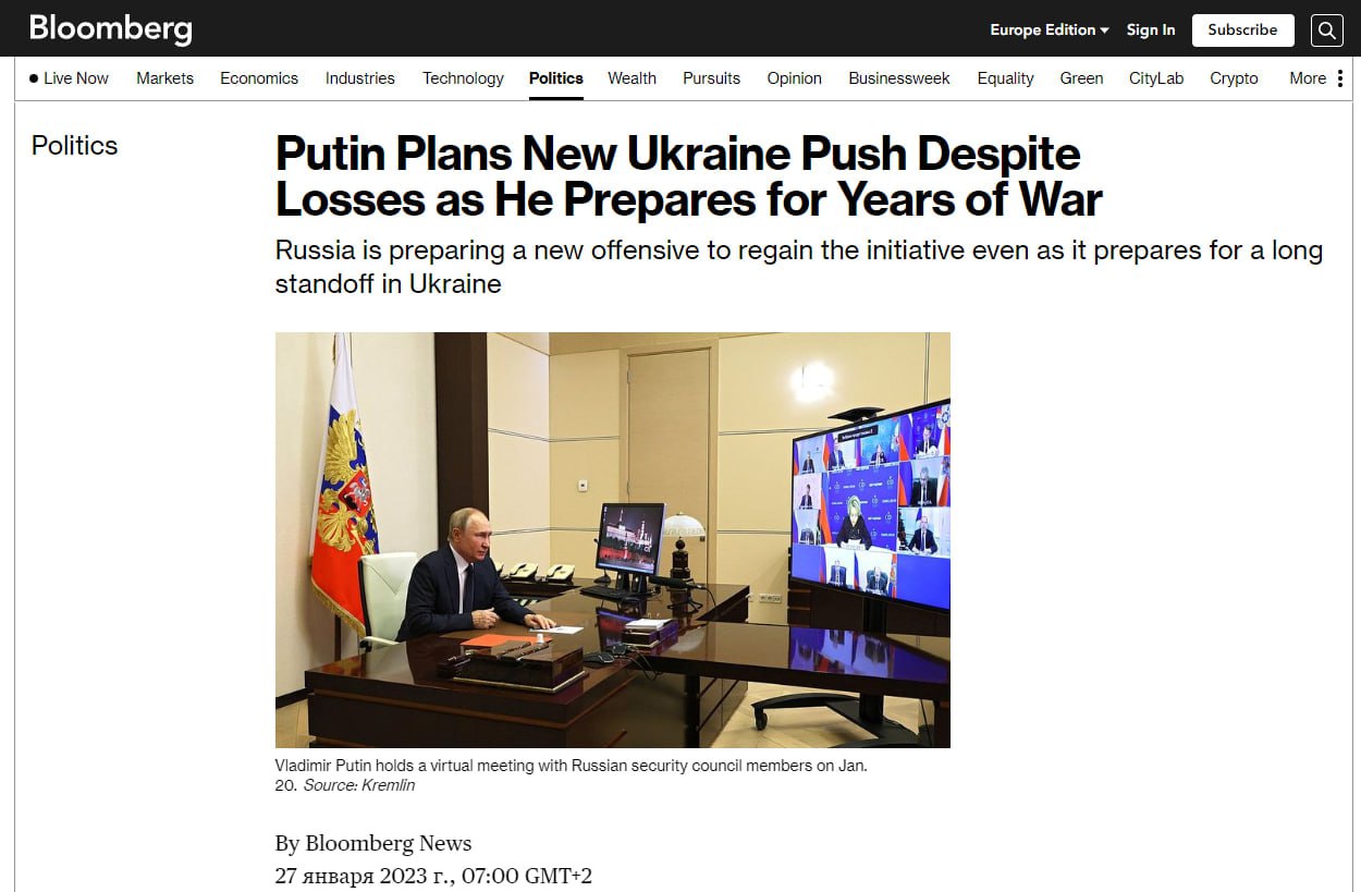 09.43 Путин готовит новое наступление, война может затянуться на годы, говорится в свежей статье Bloomberg.