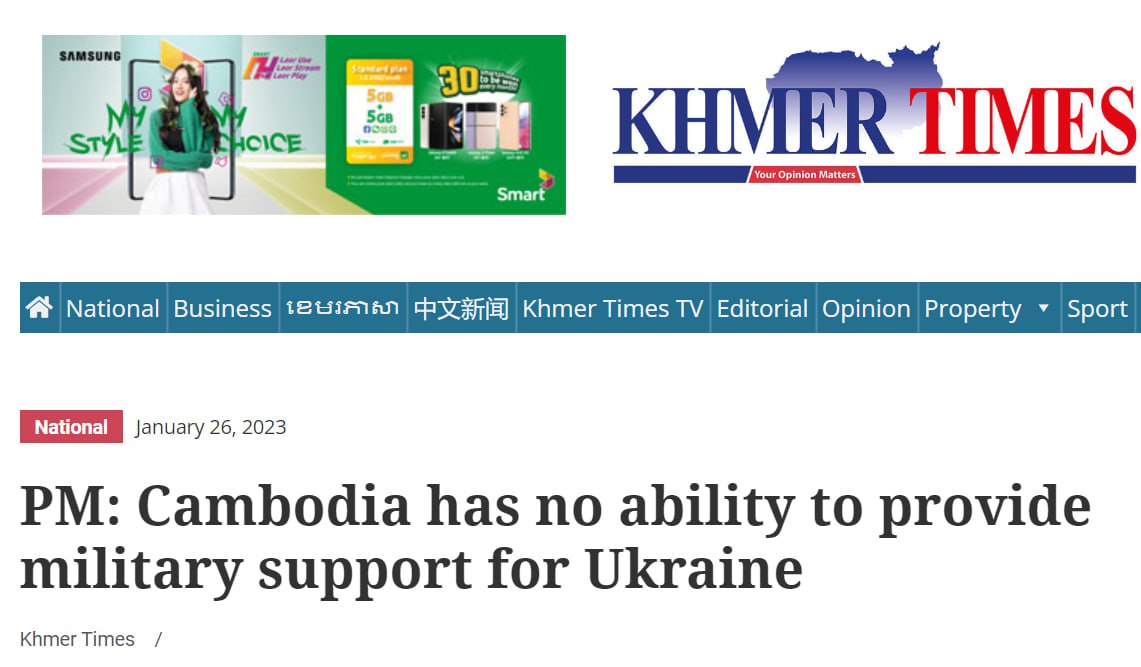 "Камбоджа не предоставляла ни одной военной поддержки Украине. У Камбоджи нет такой возможности. Техническая помощь Камбоджи украинским саперам является сугубо гуманитарным актом", - заявил премьер-министр Камбоджи Хун Сен.