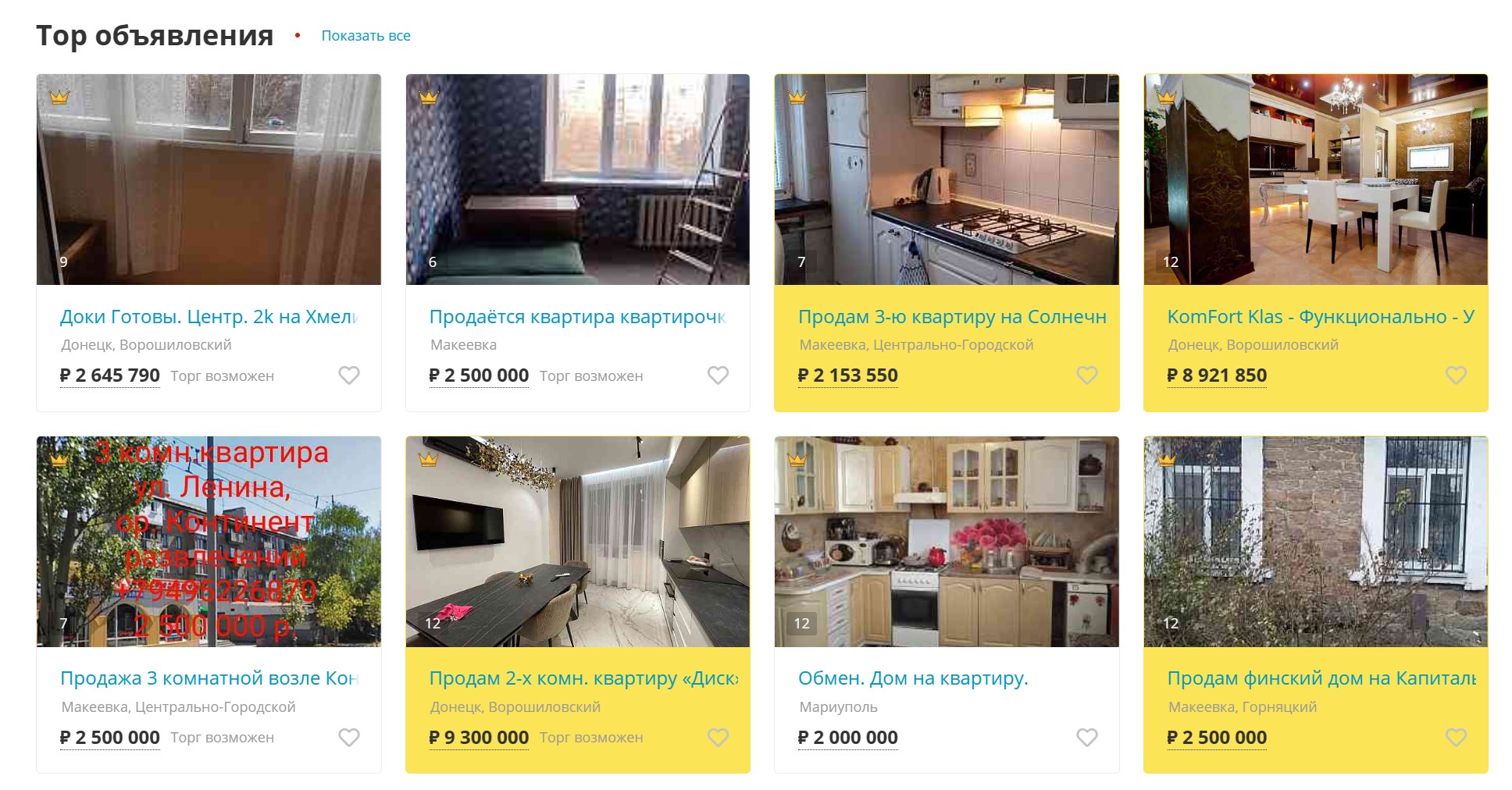 Примерный порядок цен на жилье в Донецке - на скриншоте с местного сайта объявлений. Выходит, что цена стандартной квартиры, если не брать люксовые варианты - порядка 35 тысяч долларов.