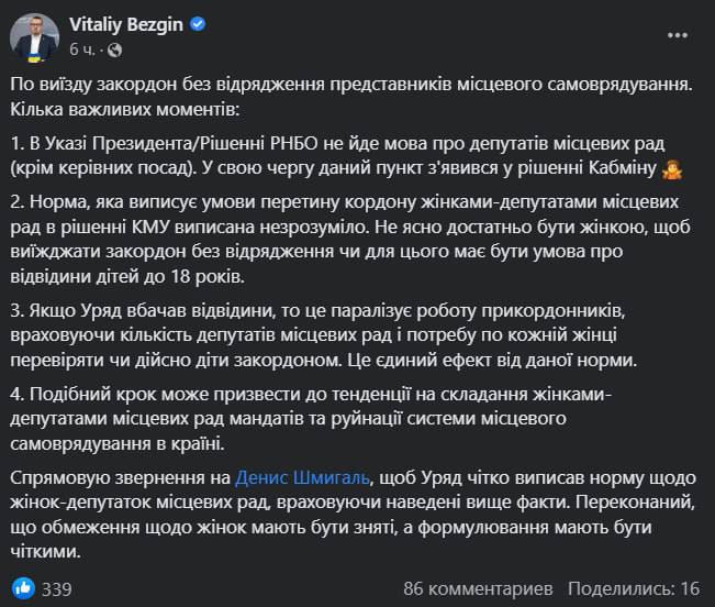 Также норма, описывающая условия пересечения границы женщинами-депутатами местных советов в решении КМУ выписана неясно.