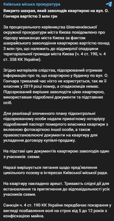 Киевская прокуратура разоблачила мошенника, который завладел одной из столичных квартир стоимостью 3 млн гривен, использовав поддельные документы.