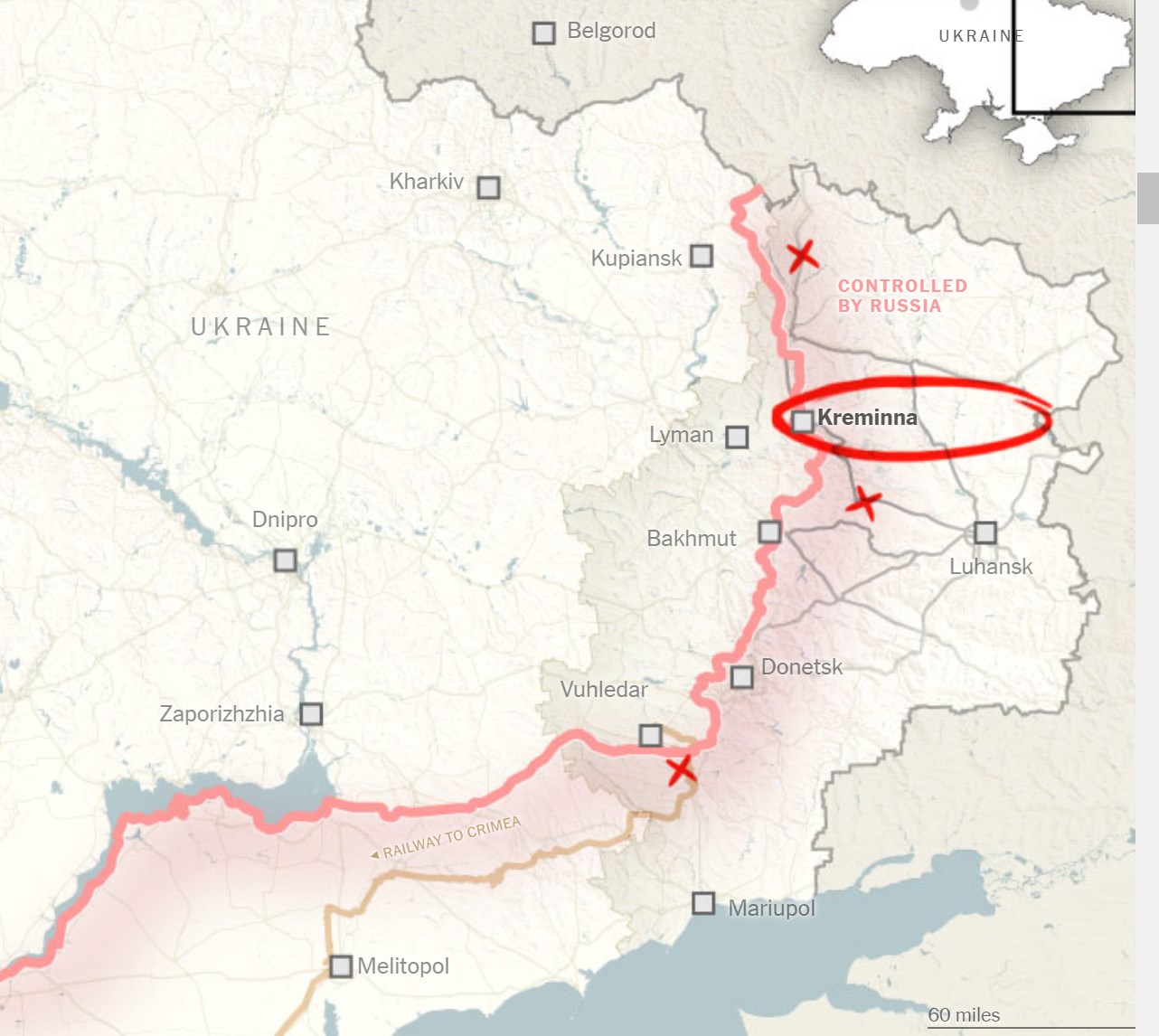 Для этого российские войска предприняли "яростную контратаку", чтобы защитить Кременную, расположенную на крупной трассе с севера на юг в Луганской области.