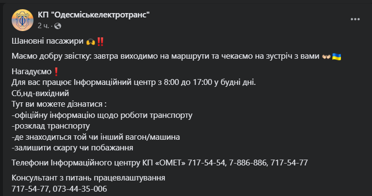 "У нас хорошее известие: завтра выходим на маршруты и ждем встречи с вами", - говорится в сообщении.