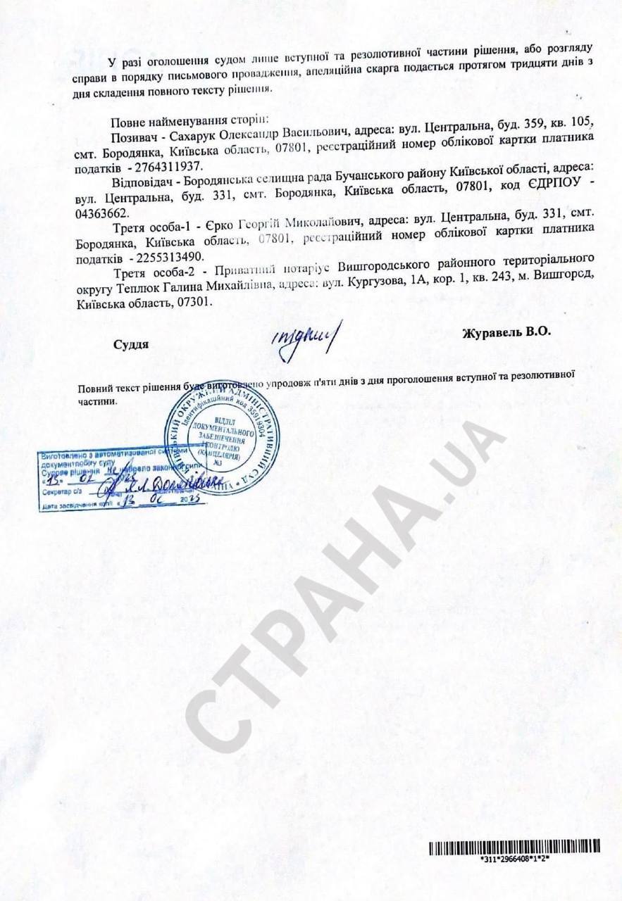 Отстраненный мэр Бородянки Александр Сахарук с таким решением сессии был не согласен и подал соотвествующий иск в суд.