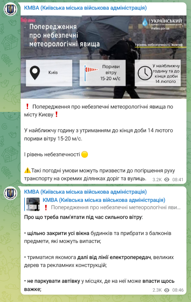 Киевлян предупреждают об опасных метеорологических явлениях в столице во вторник, 14 февраля. Из-за ожидаемых сильных порывах ветра в Киеве объявлен желтый уровень опасности.