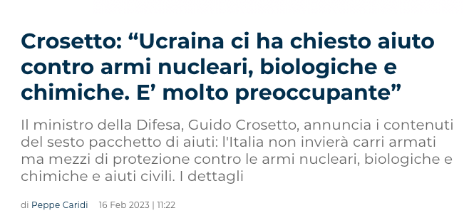 "Это очень тревожно". Украина запросила у Италии средства защиты от ядерного и химического оружия