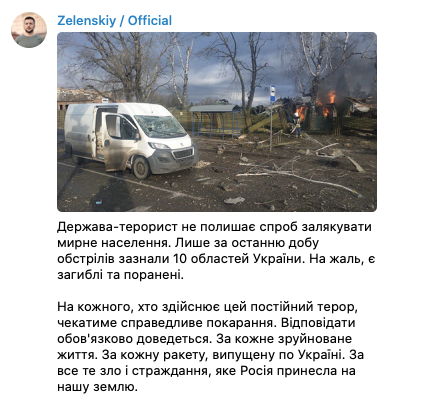 Зеленский опубликовал новое фото из Хмельницкого, где ракета упала рядом с остановкой. Есть раненые