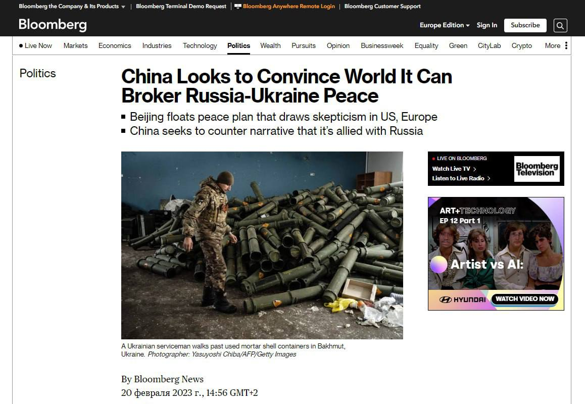 "Хотя у плана Китая мало шансов на успех, союзники США обеспокоены тем, что это предложение может найти отклик в странах глобального Юга и потенциально привлечь голоса в ООН", - пишет Bloomberg.