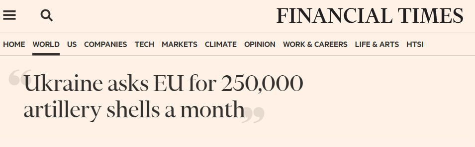 10.24 Украина просит по 250 тысяч артиллерийских снарядов от ЕС ежемесячно, утверждает Financial Times со ссылкой на попавшее в распоряжение издания письмо министра обороны Алексей Резникова.