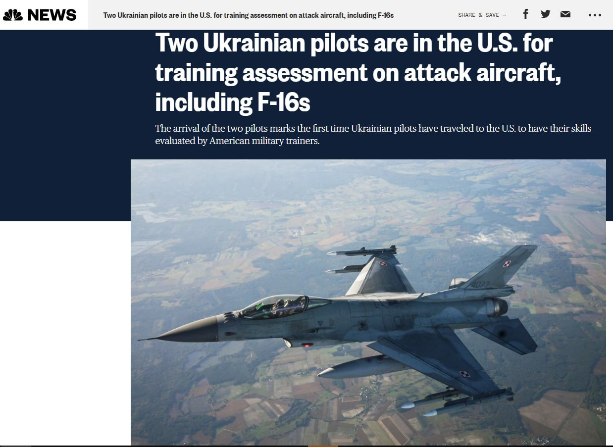 Украинские официальные лица сообщили США и другим союзникам, что у них есть менее 20 пилотов, готовых отправиться в США для обучения полетам на F-16, и еще около 30, которые могут быть обучены в ближайшем будущем.