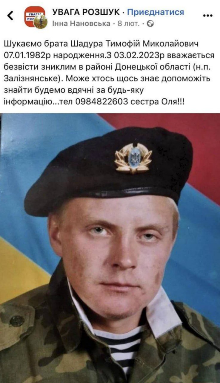 Ранее информацию о том, что это именно он, опубликовали в соцсетях. Родственники Шадуры заявили о его пропаже и надеялись найти информацию о Тимофее.