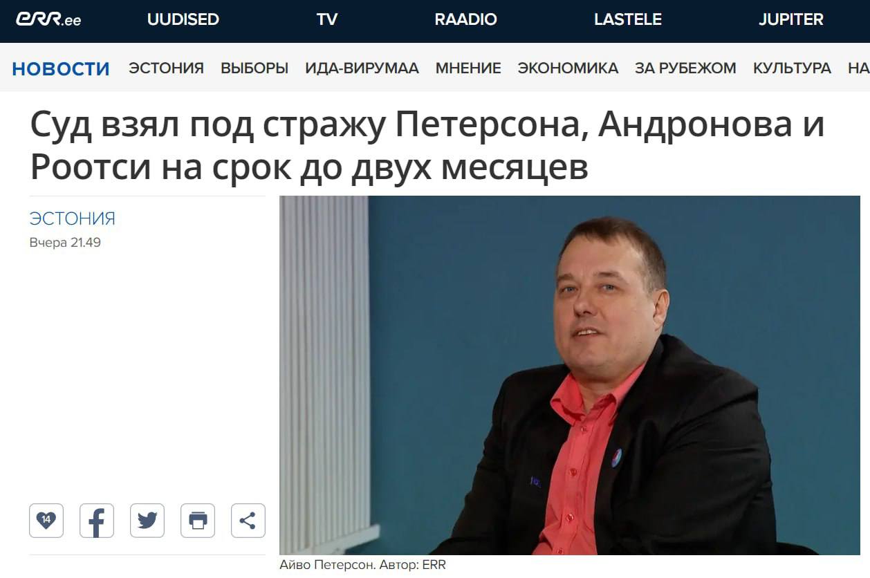 Всех троих задержали в ночь на 10 марта. Кроме Петерсона, это также Дмитрий Роотси и Андрей Андронов. Петерсон и Роотси – граждане Эстонии, Андронов – гражданин России с постоянным видом на жительство в Эстонии.