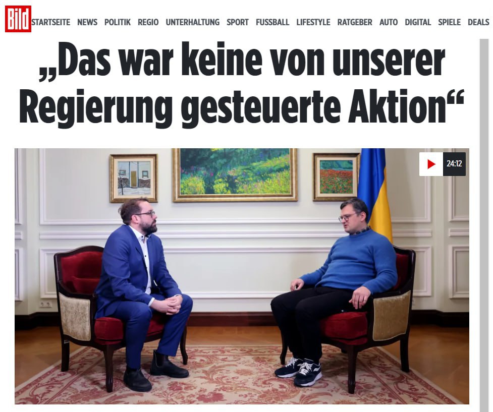 "Я с нетерпением жду разговора об этом, а также о других вопросах, Анналена Бербок прокомментировала это, и я с ней согласен. Надо дождаться выводов официального расследования, потому что происходящее сейчас является своего рода навешиванием ярлыков", - сказал украинский министр.