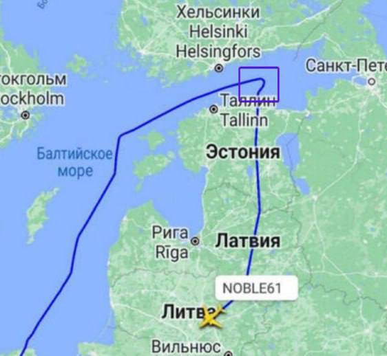 По ее информации, самолет вылетел с территории Польши, проследовал неподалеку от Таллина в сторону российской границы, развернулся в районе острова Гогланд в Финском заливе (принадлежащим России) и направился в сторону Великобритании.