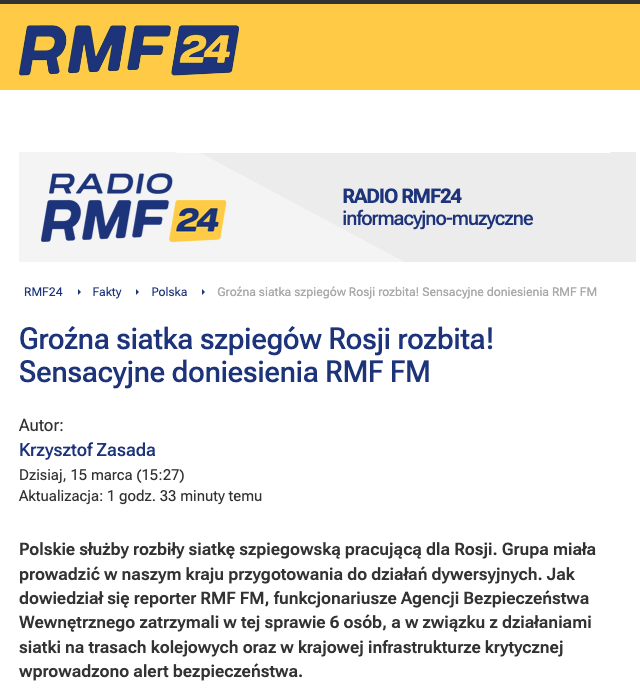 В Польше арестованы шесть человек, которых спецслужбы подозревают в установлении камер на железных дорогах в интересах российской разведки.