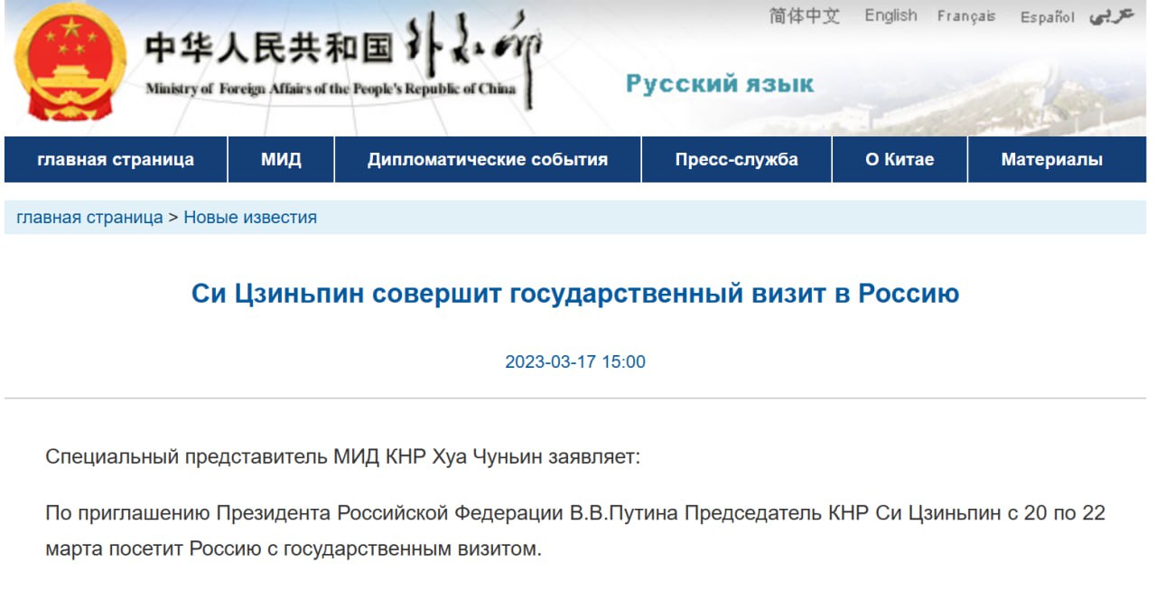 В Кремле официально заявили, что глава Китая Си Цзиньпин 20-22 марта посетит Москву. Это подтверждается сегодняшним заявлением МИД Китая.