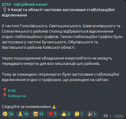 Причина - повреждение оборудования энергообъектов, которые не могут подавать энергию всем жителям.