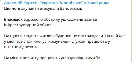 Этой ночью войска РФ ударили по Запорожью.