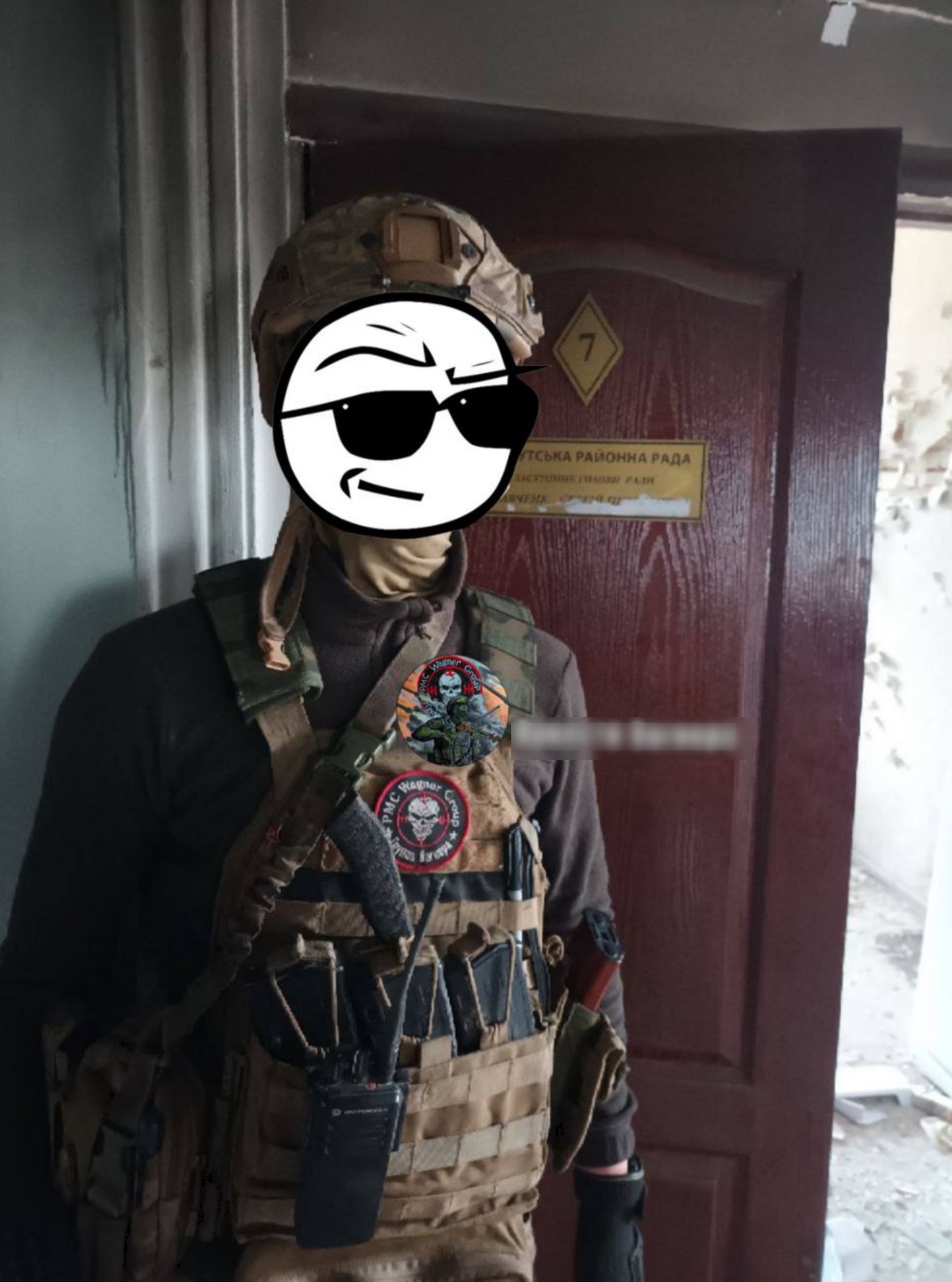 Также в телеграм-каналах "Вагнера" есть фото изнутри здания, где на дверях указано, что это Бахмутский районный совет. Здание РГА находится примерно в 650 метрах от городского совета (горисполкома).