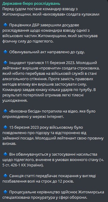 09.25 Дело по командиру взвода, который избил в Житомирской области солдата, передали в суд, сообщили в ГБР.