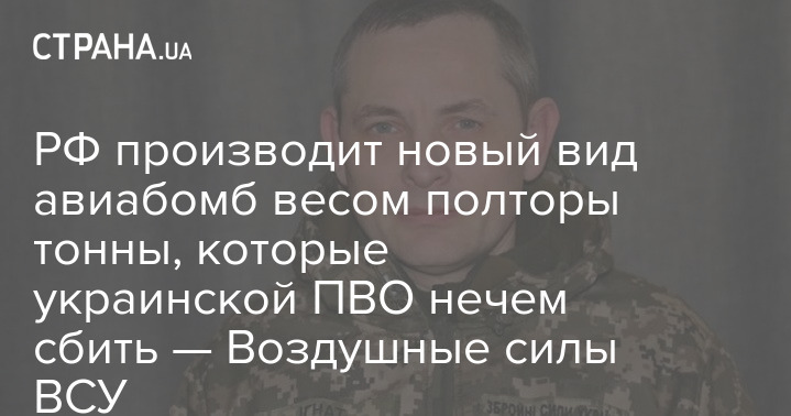 Россияне производят новый вид авиабомб весом полторы тонны, которые, к сожалению, украинской ПВО нечем сбивать. Об этом в эфире телемарафона сказал спикер Воздушных сил ВСУ Юрий Игнат.
