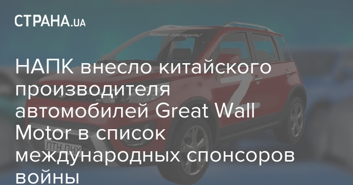 Национальное агентство по предотвращению коррупции внесло крупного китайского производителя автомобилей Great Wall Motor в перечень международных спонсоров войны.