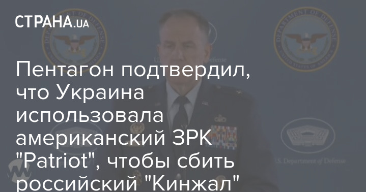 Пентагон подтвердил, что Украина использовала американский ЗРК "Patriot", чтобы сбить российский "Кинжал"