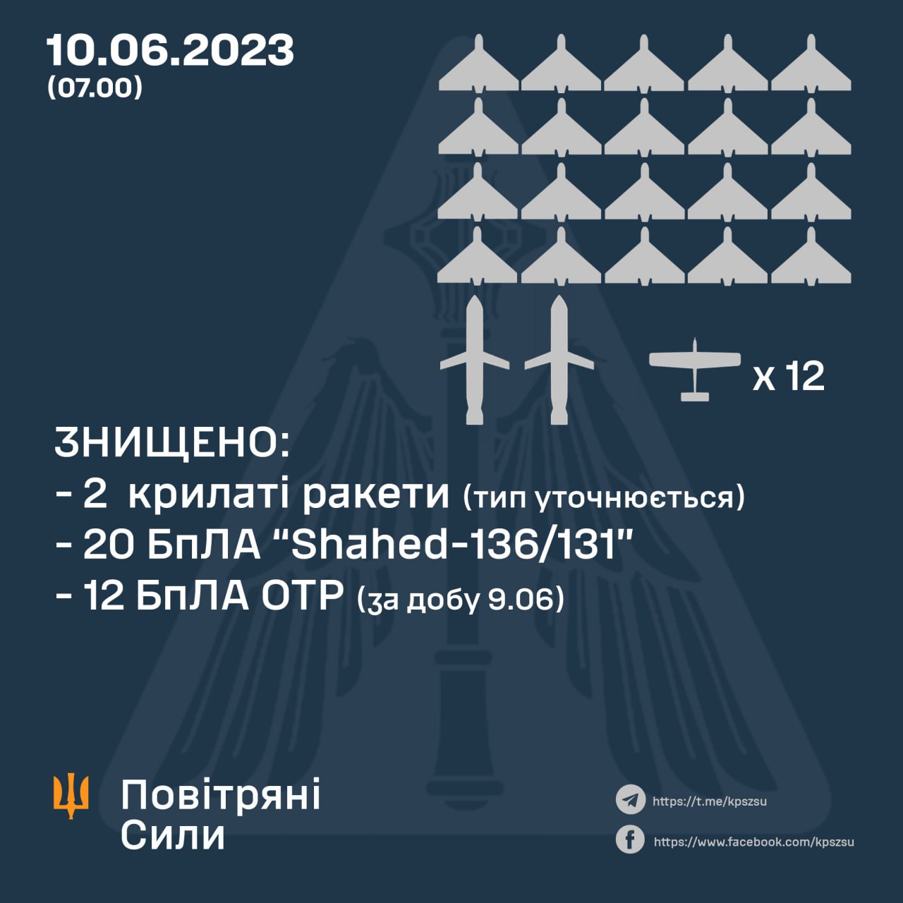 09:25 Во время ночной атаки уничтожено 20 иранских дронов и две крылатые ракеты, сообщило командование Воздушных сил.