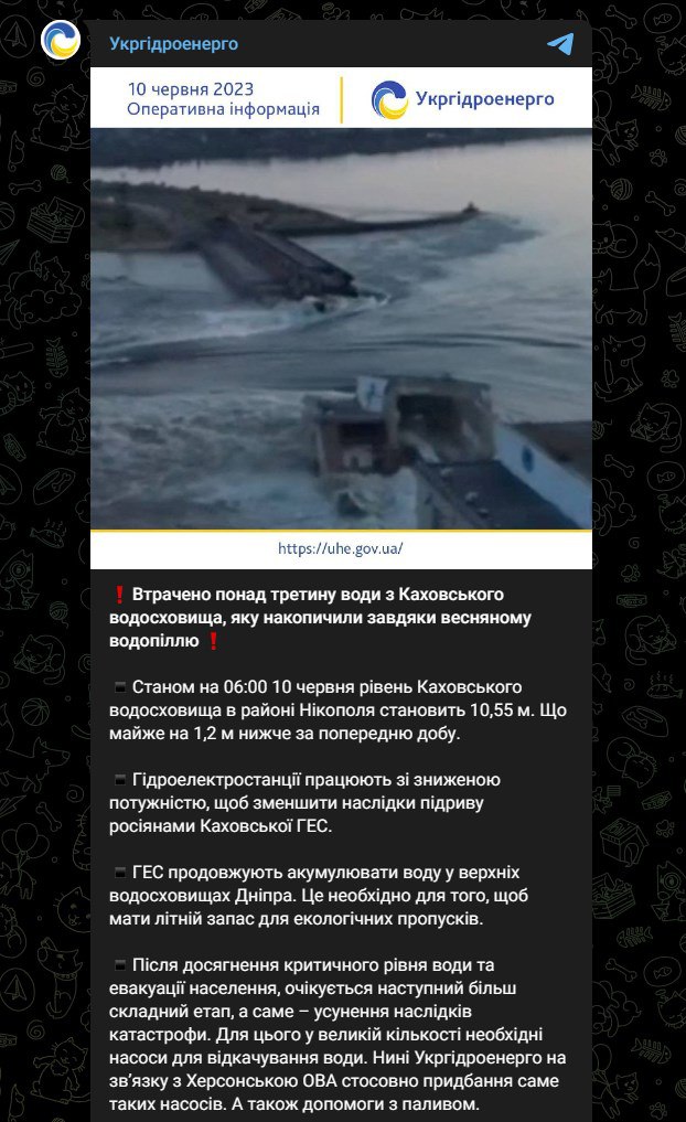 09:41 Из Каховского водохранилища на данный момент потеряно более трети вод, сообщает "Укргидроэнерго".
